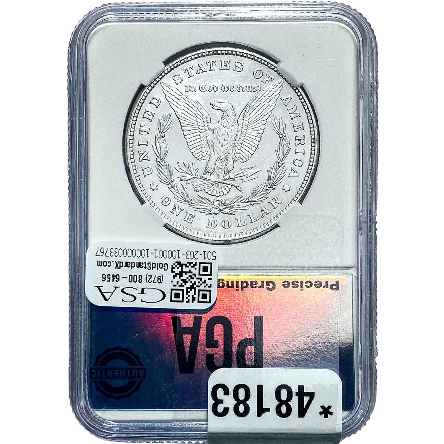 e. Coins sold referencing a third-party grading service are sold “AS IS” without any express or implied warranty, except for a guarantee by GSA that they are genuine. Removal or alteration of the holder, voids all of Bidder’s claims concerning that Product. Certain warranties may be available from the grading services and Bidders are referred to them for further details: Numismatic Guaranty Corporation (NGC), PO Box 4776, Sarasota, FL 34230, www.ngccoin.com/services/writtenguarantee.asp; Professional Coin Grading Services (PCGS), PO Box 9458, Newport Beach, CA 92658, www.pcgs.com/guarantee.html; ANACS, 6555 S. Kenton St., Ste. 303, Englewood, CO 80111; and Independent Coin Grading Co. (ICG), 7901 East Bellview, Ave., Suite 50, Englewood, CO 80111.