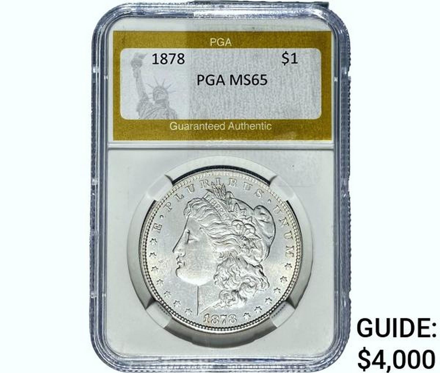 COINS AND CURRENCY LISTED IN GSA’S CATALOG AS GRADED AND ENCAPSULATED BY PCGS, NGC, ANACS, ICG, PCGS CURRENCY, PMG, PCGS BANKNOTE GRADING, CMC OR ANY OTHER THIRD-PARTY GRADING SERVICE ARE LIKEWISE SOLD “AS-IS” EXCEPT AS EXPRESSLY SET FORTH HEREIN. ALL THIRD-PARTY GRADING SERVICE GUARANTEES, INCLUDING AUTHENTICITY, ARE THE SOLE RESPONSIBILITY OF THE THIRD-PARTY GRADING SERVICE AND NOT WARRANTIES OR GUARANTEES OF GSA. BIDDERS SHOULD CONTACT THESE THIRD-PARTY GRADING SERVICES DIRECTLY WITH RESPECT TO ANY CLAIMS OR QUESTIONS THEY MAY HAVE CONCERNING THEIR GUARANTEES AND WARRANTIES. BIDDERS ACKNOWLEDGE AND AGREE THAT AUCTIONEER IS NOT BOUND BY OR LIABLE FOR ANY OPINION OR CERTIFICATION BY ANY THIRD-PARTY GRADING SERVICE. REMOVAL OF A PRODUCT FROM ITS PROTECTIVE CASING OR HOLDER OR ALTERATION OF ANY COIN HOLDER WAIVES ALL RIGHTS CONCERNING THE PRODUCT CONTAINED THEREIN.