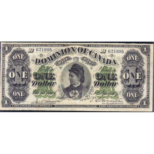 1878 One Dollar Lettered Border, Payable at Montreal, DC-8e-ii Serial Number B621895 D, PMG Very Fine-20. An attractive example