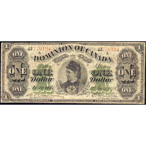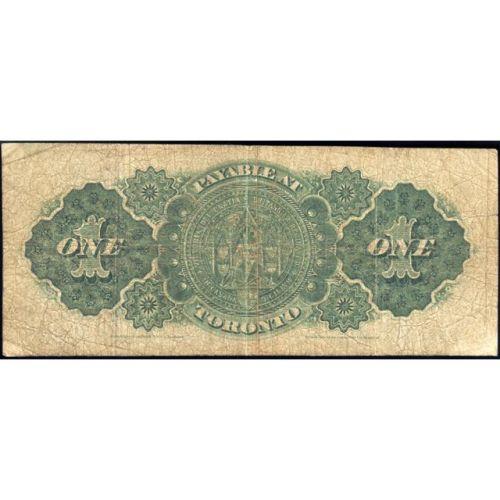 1878 One Dollar Lettered Border, Payable at Toronto, Series A, DC-8f-i, Serial Number 770194 A, VG. Close cut at the top left margin
