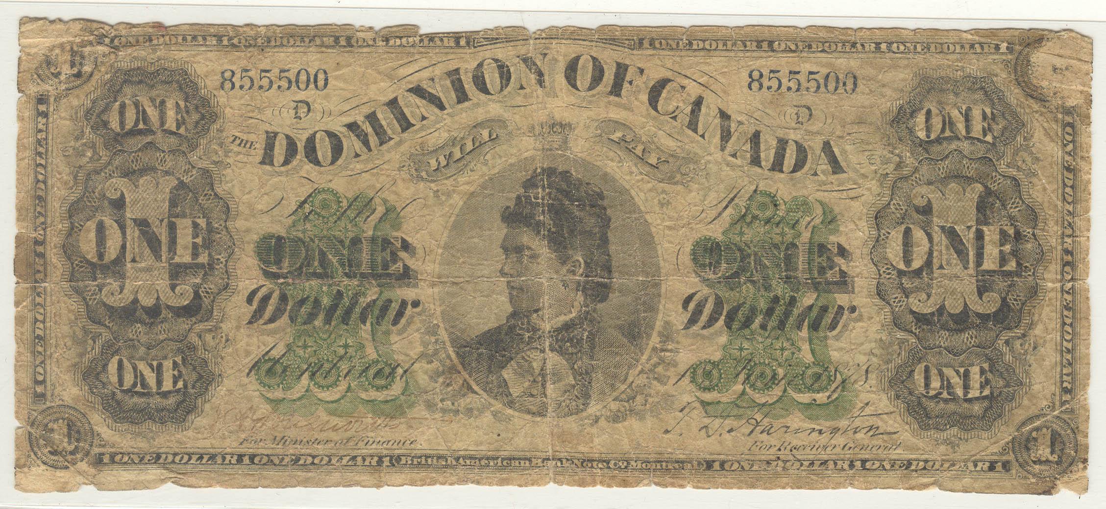 1878 One Dollar Payable at Montreal, DC-8e, Good, Harrington, serial 855500, Letter D.