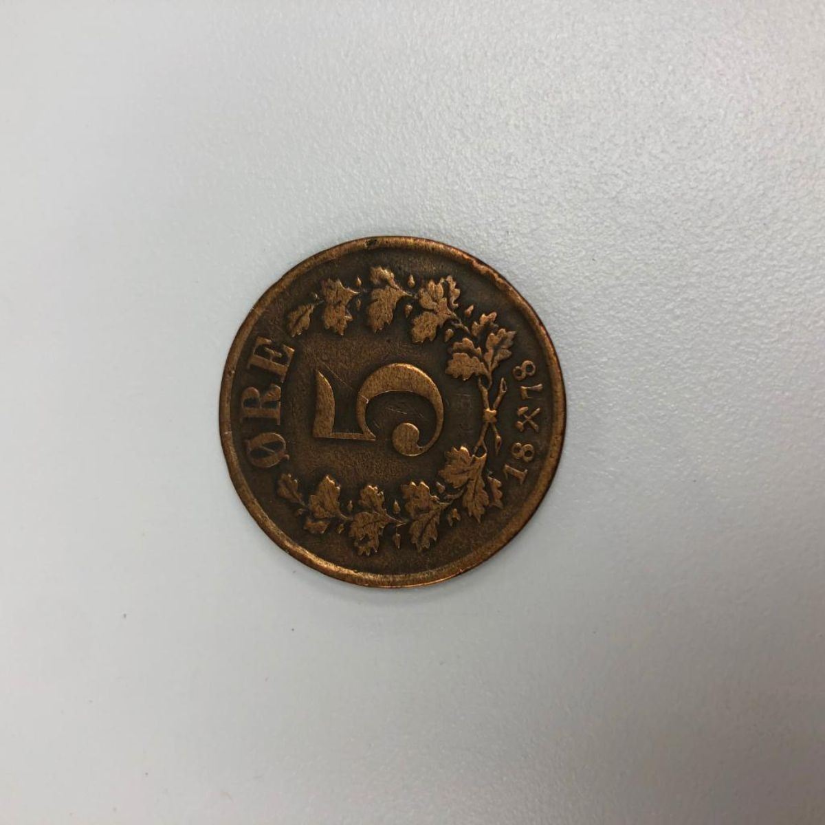 Obverse Den norske løve [The Norwegian Lion] within shield and crown above. Shield divides monogram Lettering: Ocr II Reverse Central large numeral within wreath, currency at top, date at bottom Lettering: 5 ØRE 1878 Specifications Country: Norway King: Oscar II (1872-1905) Type: Standard circulation coin Years: 1875-1902 Value: 5 Øre (0.05 NOK) Composition: Bronze Weight: 8 g Diameter: 27 mm Shape: Round