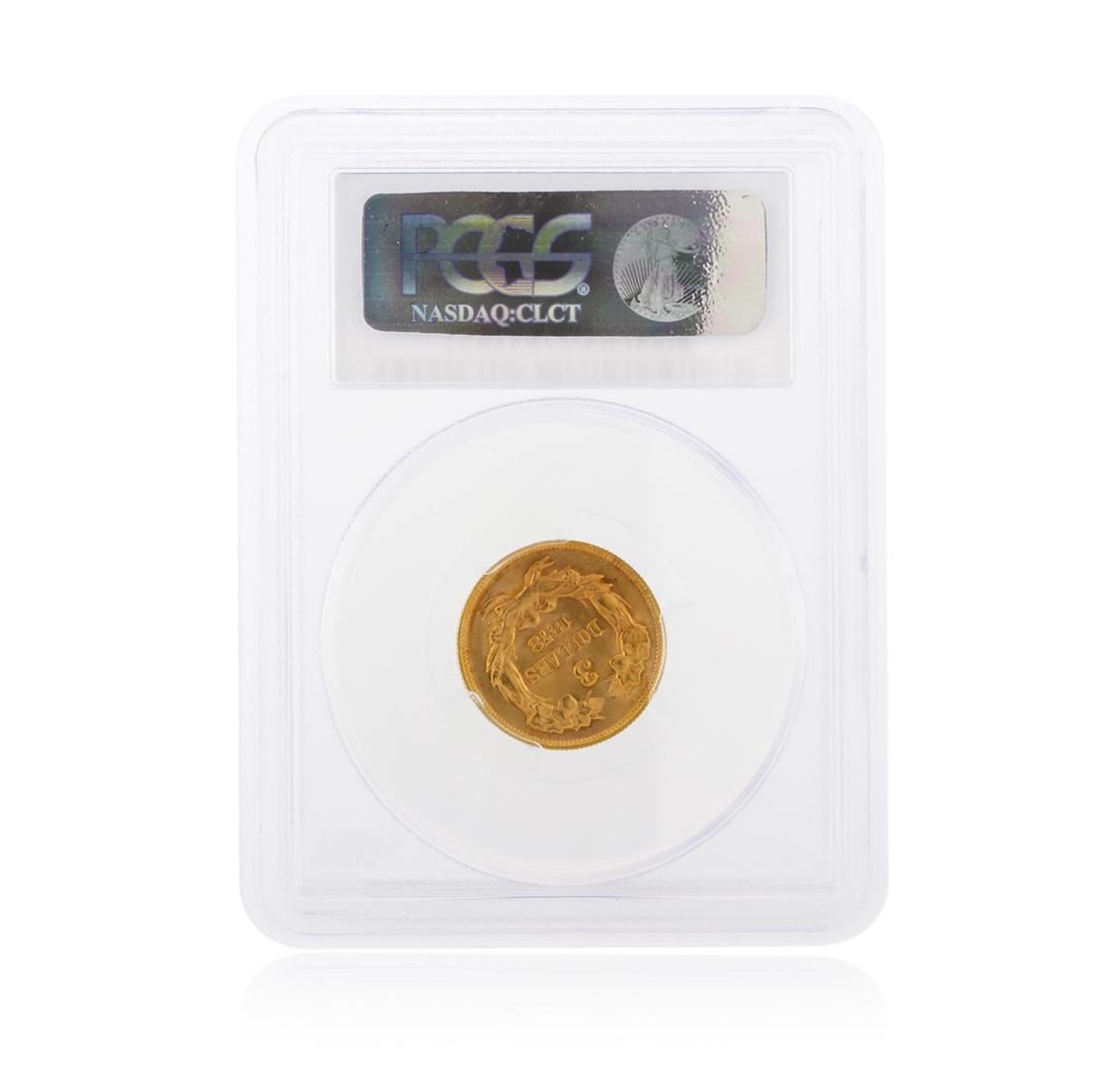 One 1878 PCGS MS63 $3 Indian Princess Head Gold Coin. PCGS Certified.