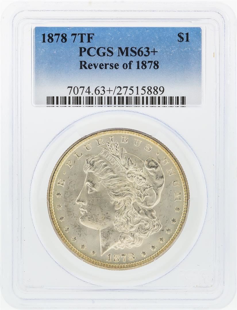 One 1878 PCGS MS63+ 7 Tail Feathers Morgan Silver Dollar. PCGS Certified.