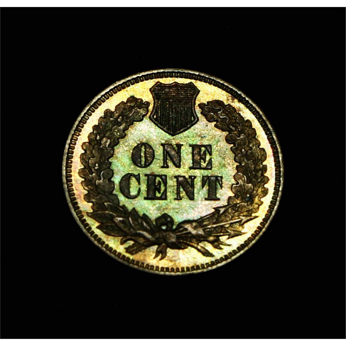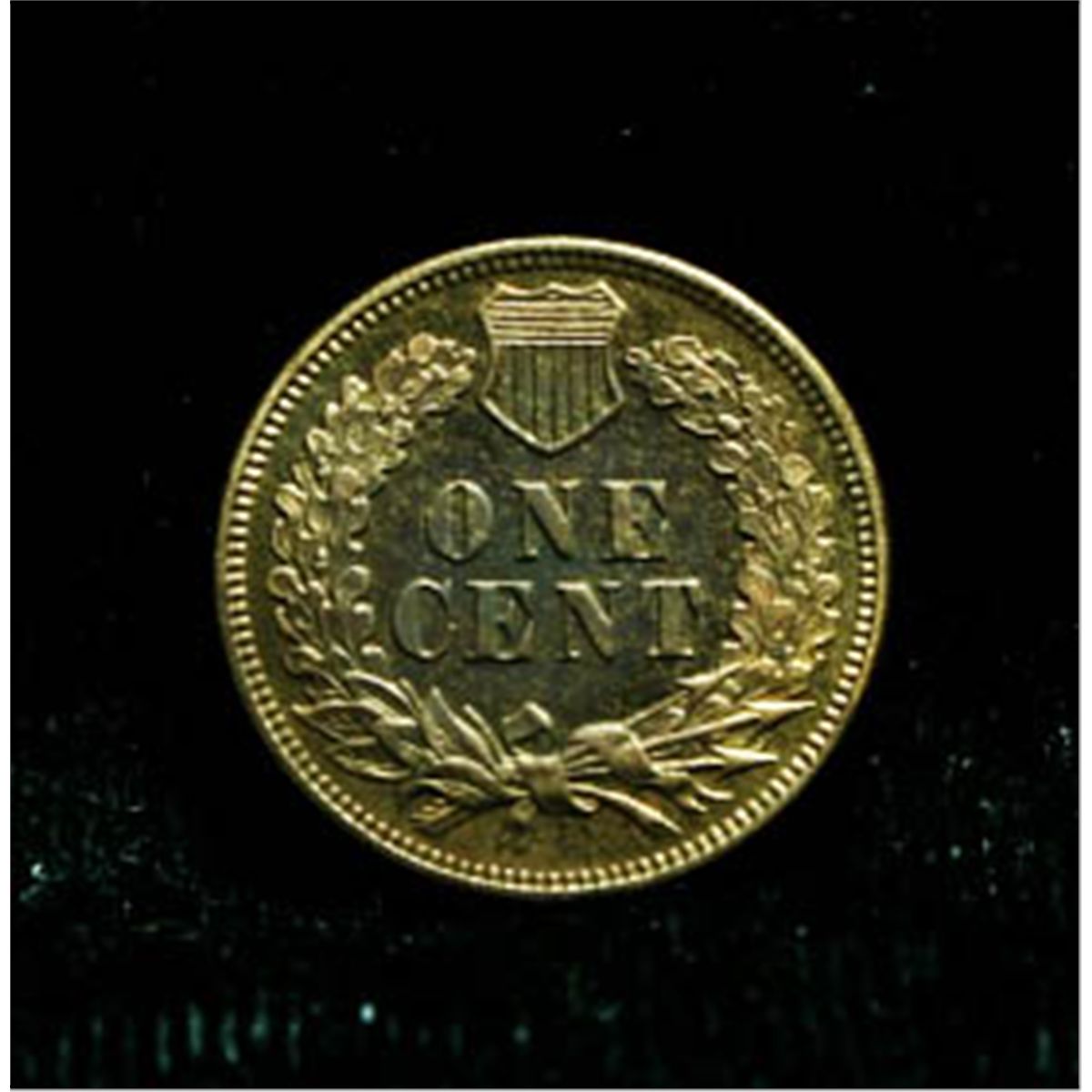 Very attractive Proof Indian Cent. This coin has great deep red color and nice reflective fields. It is a Beautiful Cameo Proof. PCGS's Price Guide Lists PF65 RD Cameo at $1800. NGC's Price Guide does not list a price for Cameo and The Wholesale Greysheet does not list a specific price by date for proof Indians. Estimated Value $1500