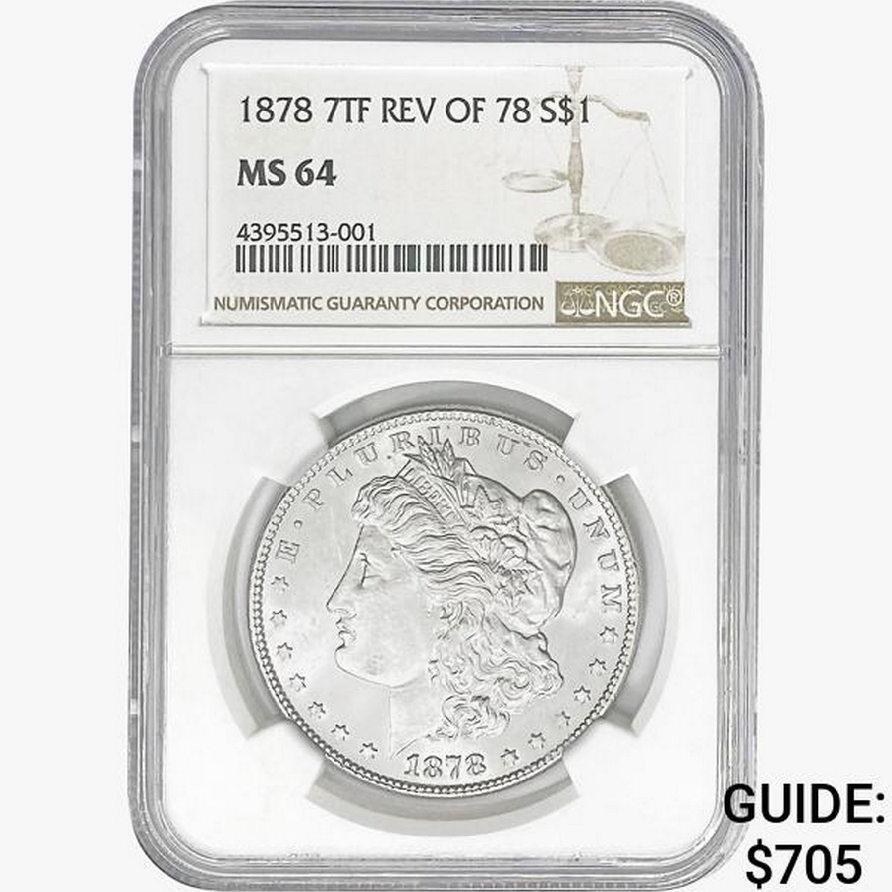 1878 REV 78 Morgan Silver Dollar NGC MS64