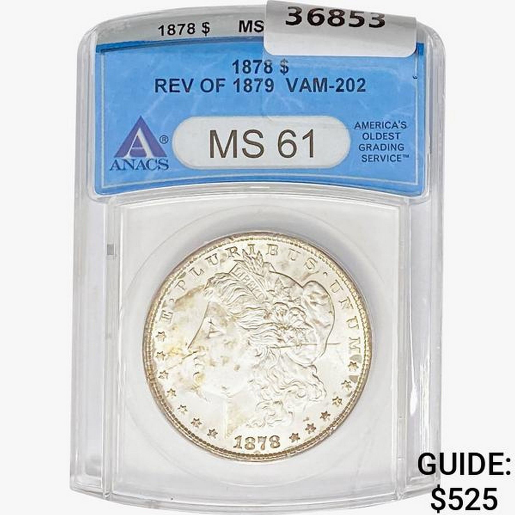 1878 REV79 Morgan Silver Dollar ANACS MS61 VAM-202