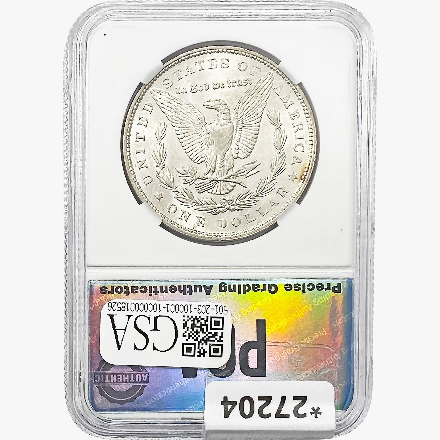 COINS AND CURRENCY LISTED IN GSA’S CATALOG AS GRADED AND ENCAPSULATED BY PCGS, NGC, ANACS, ICG, PCGS CURRENCY, PMG, PCGS BANKNOTE GRADING, CMC OR ANY OTHER THIRD-PARTY GRADING SERVICE ARE LIKEWISE SOLD “AS-IS” EXCEPT AS EXPRESSLY SET FORTH HEREIN. ALL THIRD-PARTY GRADING SERVICE GUARANTEES, INCLUDING AUTHENTICITY, ARE THE SOLE RESPONSIBILITY OF THE THIRD-PARTY GRADING SERVICE AND NOT WARRANTIES OR GUARANTEES OF GSA. BIDDERS SHOULD CONTACT THESE THIRD-PARTY GRADING SERVICES DIRECTLY WITH RESPECT TO ANY CLAIMS OR QUESTIONS THEY MAY HAVE CONCERNING THEIR GUARANTEES AND WARRANTIES. BIDDERS ACKNOWLEDGE AND AGREE THAT AUCTIONEER IS NOT BOUND BY OR LIABLE FOR ANY OPINION OR CERTIFICATION BY ANY THIRD-PARTY GRADING SERVICE. REMOVAL OF A PRODUCT FROM ITS PROTECTIVE CASING OR HOLDER OR ALTERATION OF ANY COIN HOLDER WAIVES ALL RIGHTS CONCERNING THE PRODUCT CONTAINED THEREIN.