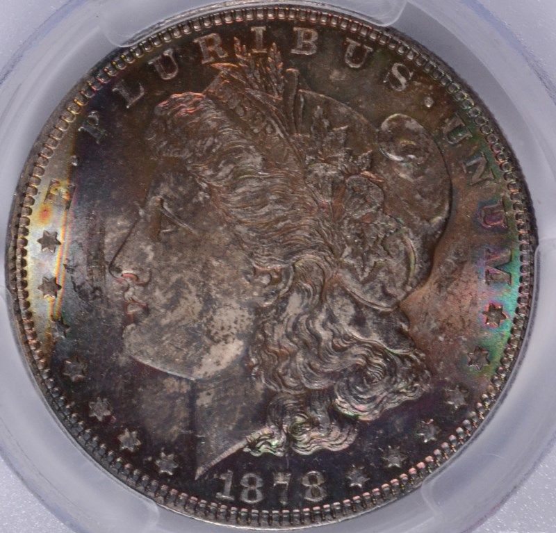 ABSOLUTELY SPECTACULAR OBVERSE RAINBOW COLORS! BLAST WHITE REVERSE! END-OF-A-ROLL-COIN! ESTIMATE, $2750.00 TO $3000.00