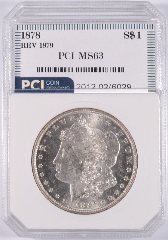 1878 REVERSE OF 79 MORGAN SILVER DOLLAR, PCI MS-63 NICE!
