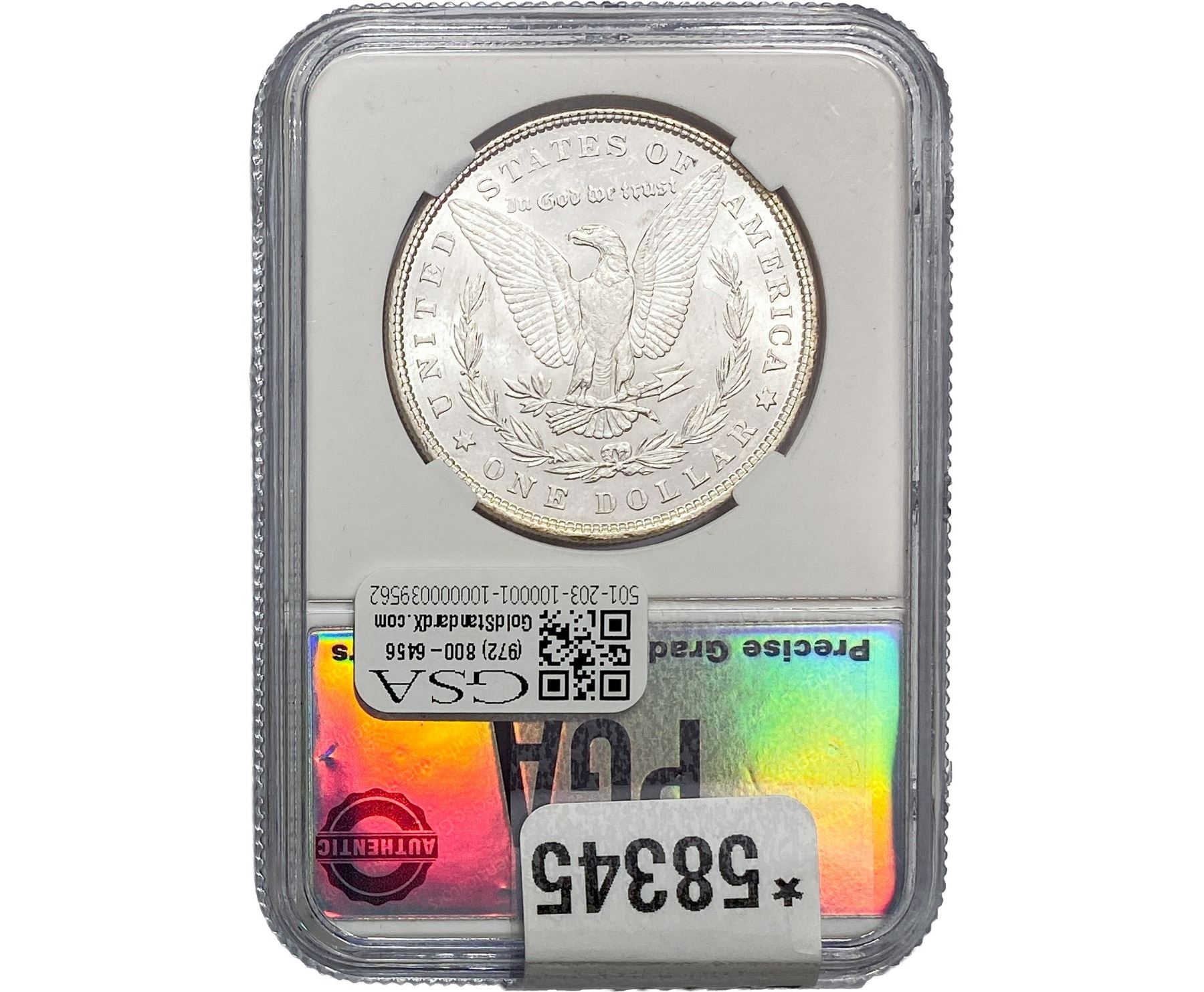 e. Coins sold referencing a third-party grading service are sold “AS IS” without any express or implied warranty, except for a guarantee by GSA that they are genuine. Removal or alteration of the holder, voids all of Bidder’s claims concerning that Product. Certain warranties may be available from the grading services and Bidders are referred to them for further details: Numismatic Guaranty Corporation (NGC), PO Box 4776, Sarasota, FL 34230, www.ngccoin.com/services/writtenguarantee.asp; Professional Coin Grading Services (PCGS), PO Box 9458, Newport Beach, CA 92658, www.pcgs.com/guarantee.html; ANACS, 6555 S. Kenton St., Ste. 303, Englewood, CO 80111; and Independent Coin Grading Co. (ICG), 7901 East Bellview, Ave., Suite 50, Englewood, CO 80111.