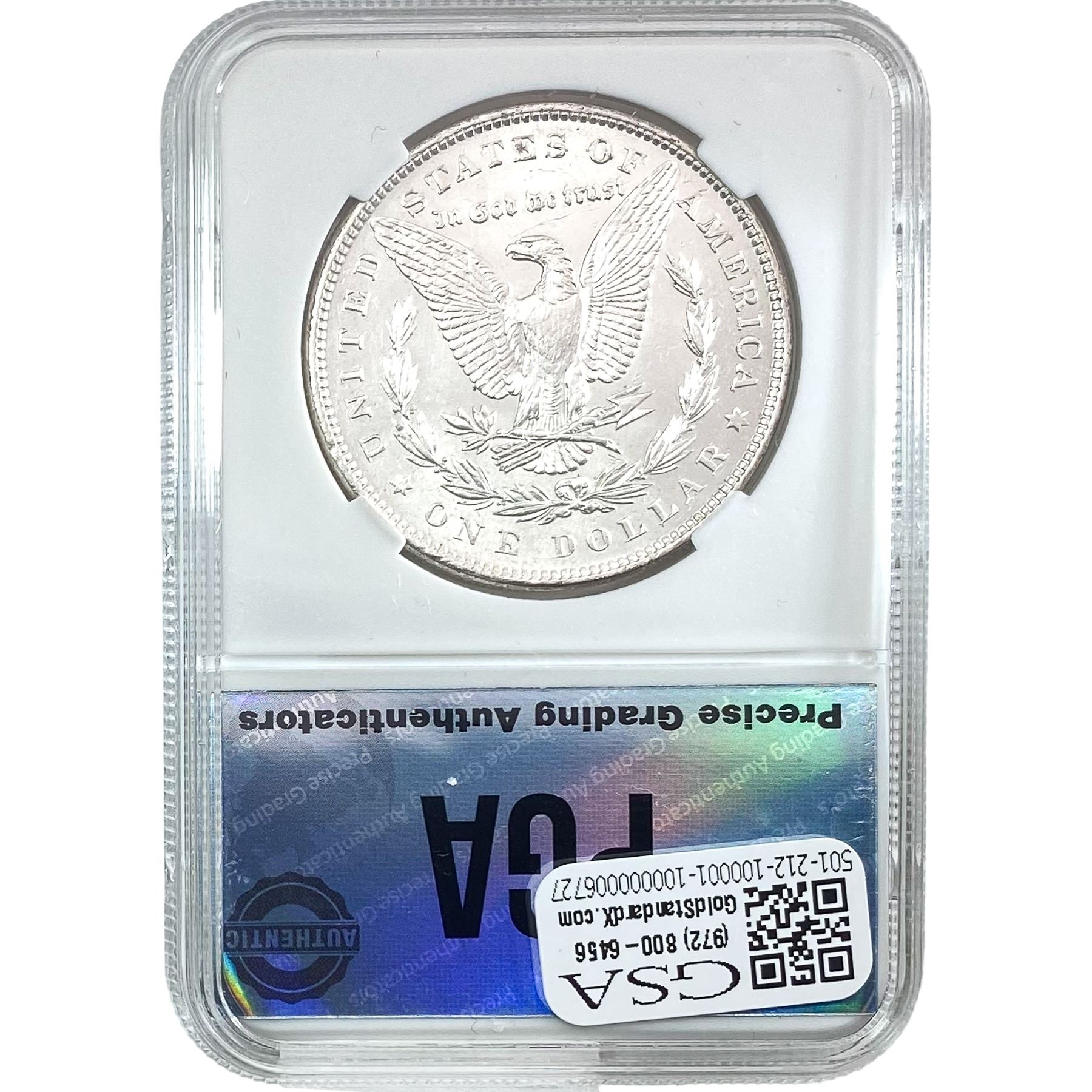 COINS AND CURRENCY LISTED IN GSA’S CATALOG AS GRADED AND ENCAPSULATED BY PCGS, NGC, ANACS, ICG, PCGS CURRENCY, PMG, PCGS BANKNOTE GRADING, CMC OR ANY OTHER THIRD-PARTY GRADING SERVICE ARE LIKEWISE SOLD “AS-IS” EXCEPT AS EXPRESSLY SET FORTH HEREIN. ALL THIRD-PARTY GRADING SERVICE GUARANTEES, INCLUDING AUTHENTICITY, ARE THE SOLE RESPONSIBILITY OF THE THIRD-PARTY GRADING SERVICE AND NOT WARRANTIES OR GUARANTEES OF GSA. BIDDERS SHOULD CONTACT THESE THIRD-PARTY GRADING SERVICES DIRECTLY WITH RESPECT TO ANY CLAIMS OR QUESTIONS THEY MAY HAVE CONCERNING THEIR GUARANTEES AND WARRANTIES. BIDDERS ACKNOWLEDGE AND AGREE THAT AUCTIONEER IS NOT BOUND BY OR LIABLE FOR ANY OPINION OR CERTIFICATION BY ANY THIRD-PARTY GRADING SERVICE. REMOVAL OF A PRODUCT FROM ITS PROTECTIVE CASING OR HOLDER OR ALTERATION OF ANY COIN HOLDER WAIVES ALL RIGHTS CONCERNING THE PRODUCT CONTAINED THEREIN.