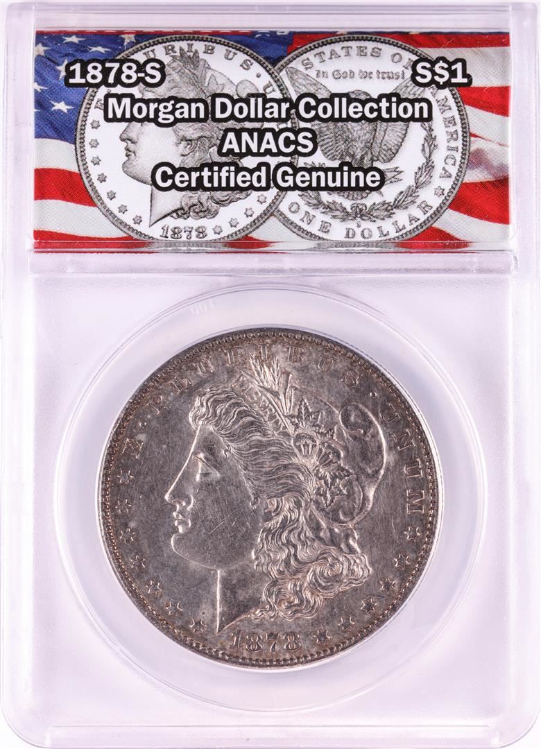 One 1878-S $1 Morgan Silver Dollar Coin ANACS Genuine. ANACS Certified.