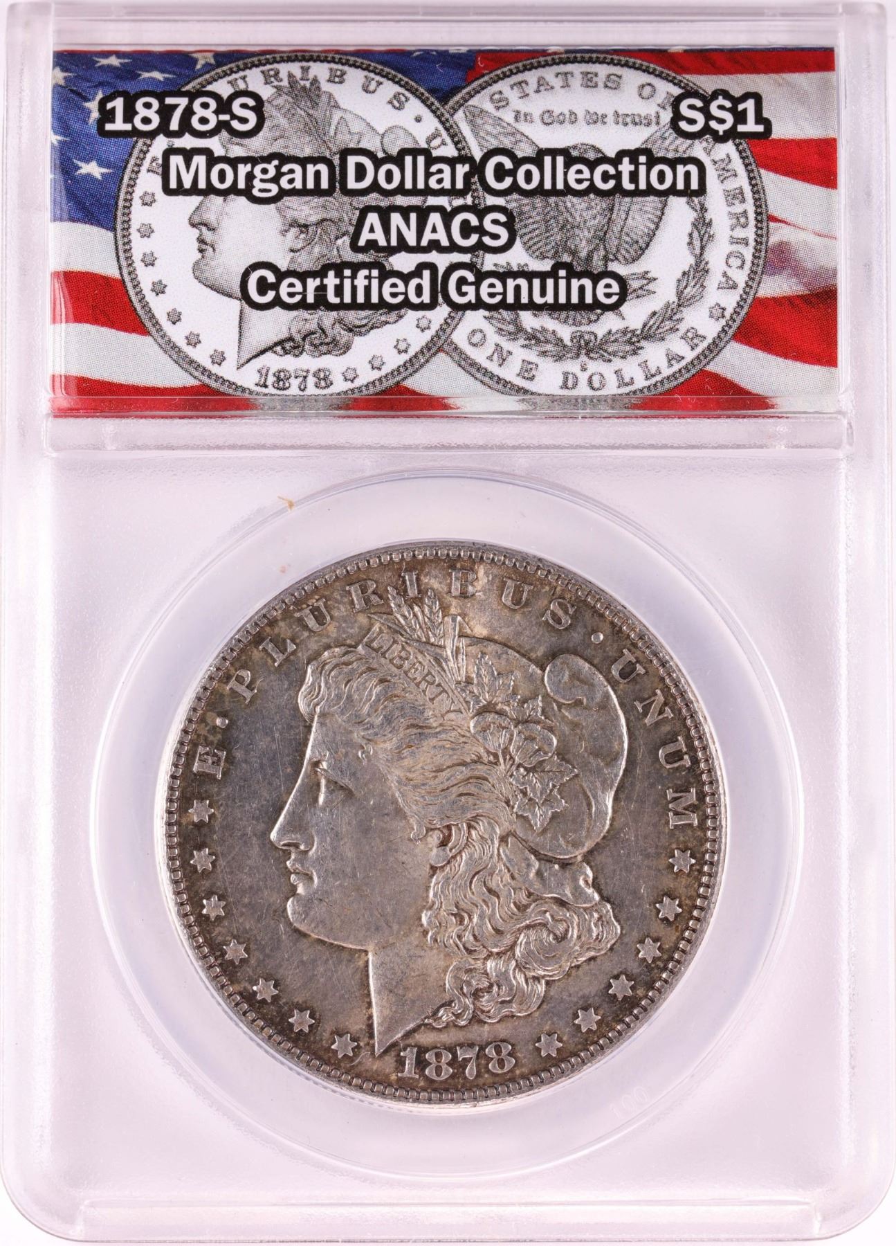 One 1878-S $1 Morgan Silver Dollar Coin ANACS Genuine.