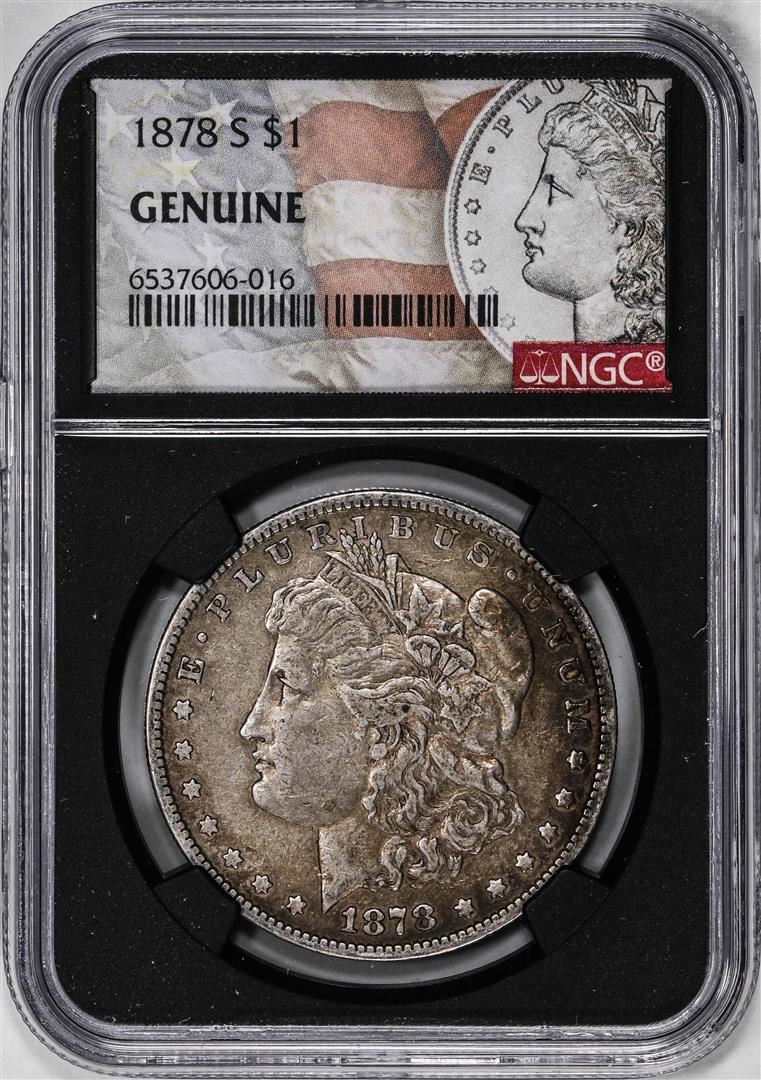 One 1878-S $1 Morgan Silver Dollar Coin NGC Genuine. NGC Certified.
