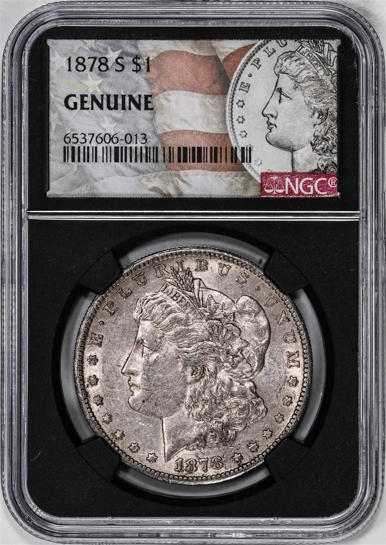 One 1878-S $1 Morgan Silver Dollar Coin NGC Genuine. NGC Certified.