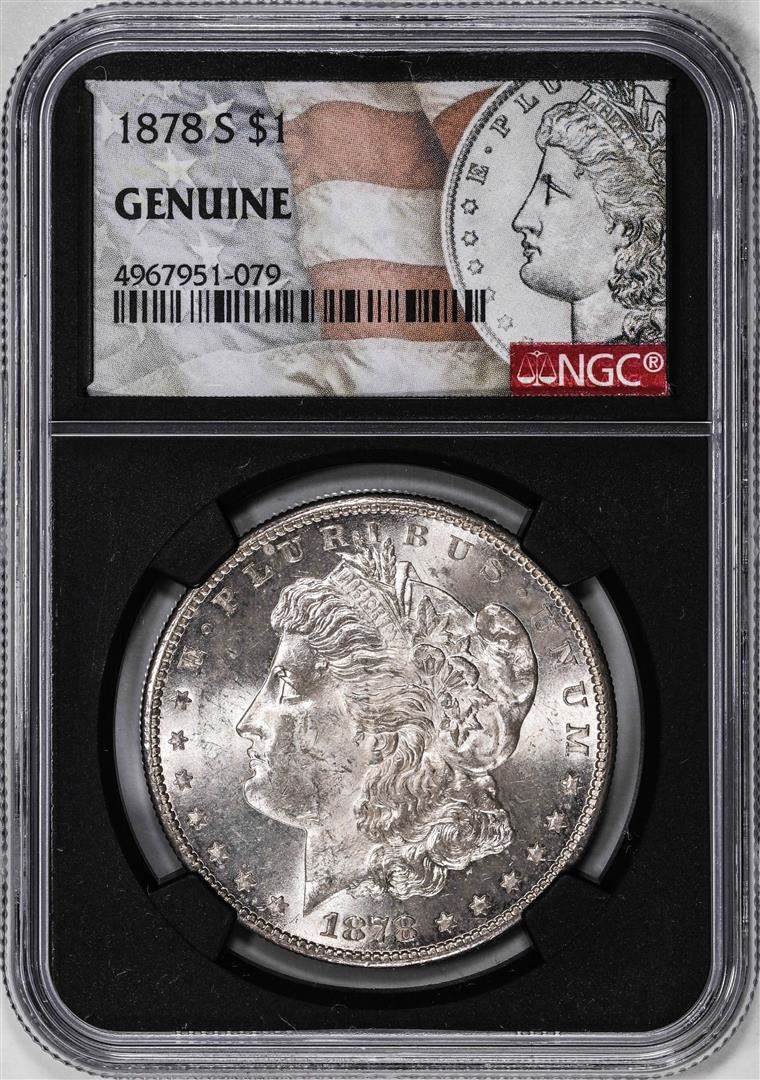 One 1878-S $1 Morgan Silver Dollar Coin NGC Genuine. NGC Certified.