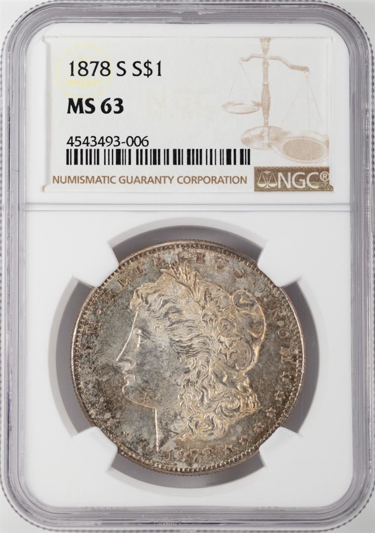 One 1878-S $1 Morgan Silver Dollar Coin NGC MS63. NGC Certified.