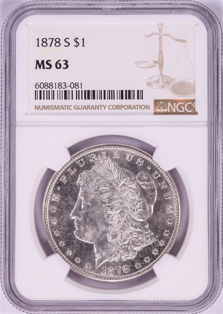 One 1878-S $1 Morgan Silver Dollar Coin NGC MS63. NGC Certified.