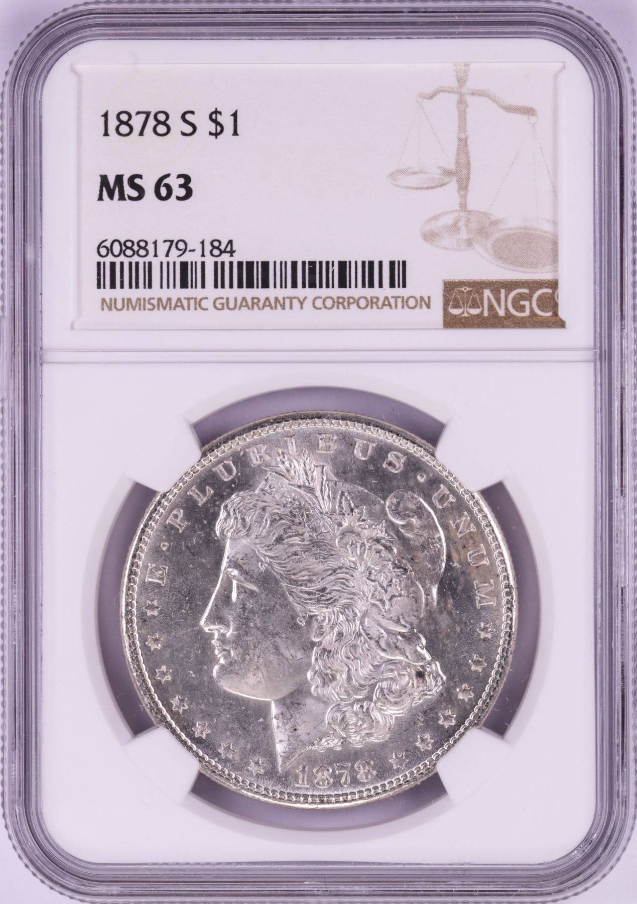 One 1878-S $1 Morgan Silver Dollar Coin NGC MS63.