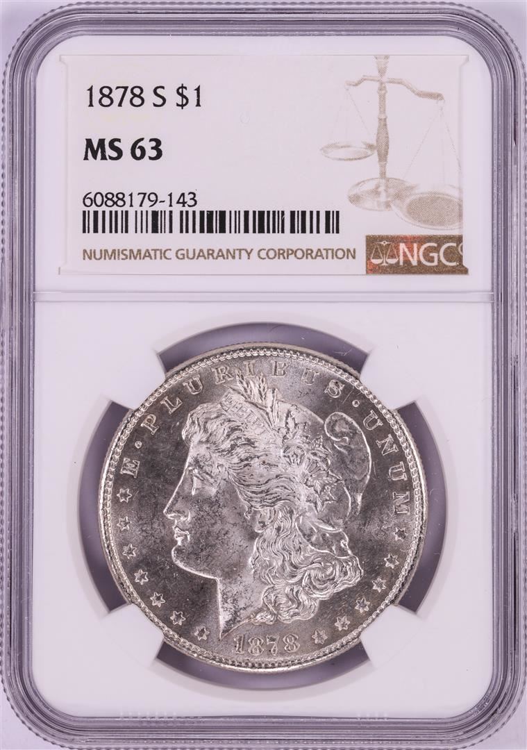 One 1878-S $1 Morgan Silver Dollar Coin NGC MS63. NGC Certified.