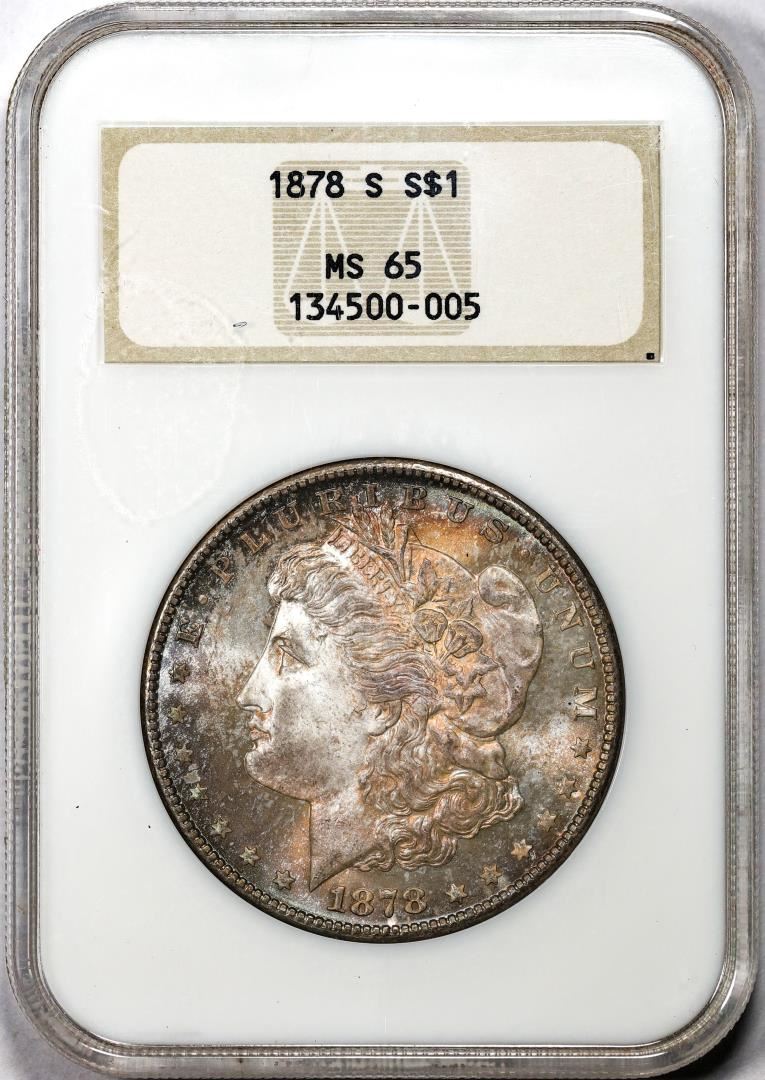 1878-S $1 Morgan Silver Dollar Coin NGC MS65 Nice Toning Old Fatty Holder