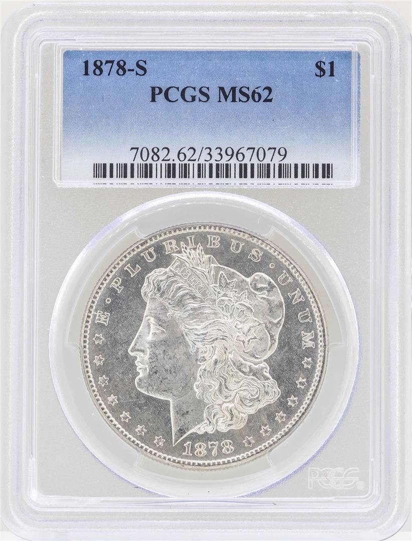 One 1878-S $1 Morgan Silver Dollar Coin PCGS MS62. PCGS Graded.