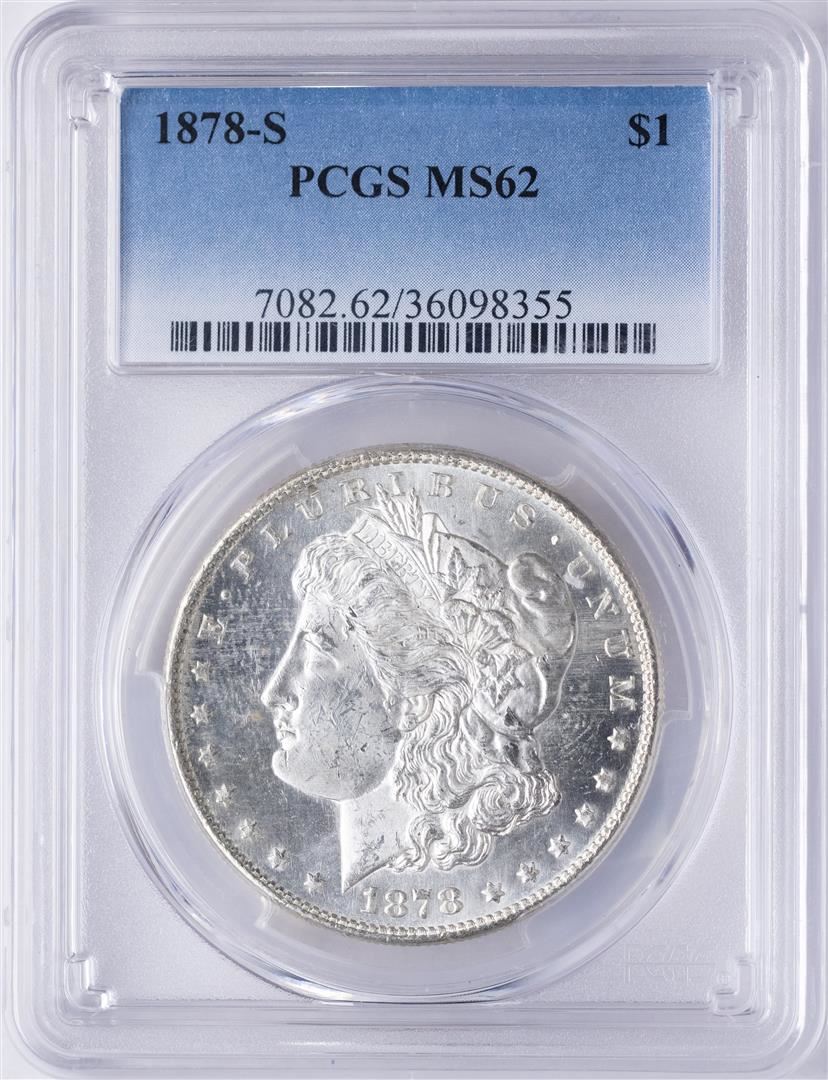 One 1878-S $1 Morgan Silver Dollar Coin PCGS MS62. PCGS Graded.
