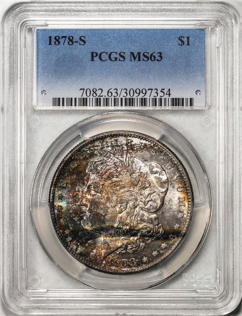 One 1878-S $1 Morgan Silver Dollar Coin PCGS MS63 Nice Toning. PCGS Graded.