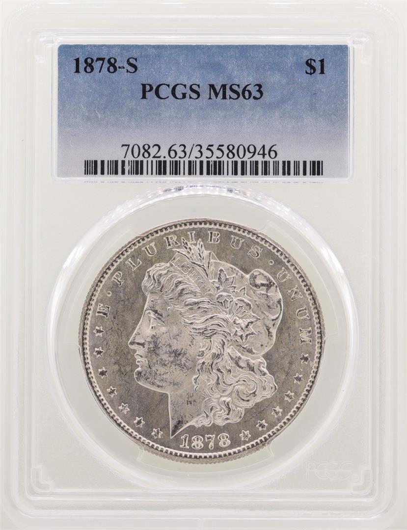 One 1878-S $1 Morgan Silver Dollar Coin PCGS MS63. PCGS Graded.