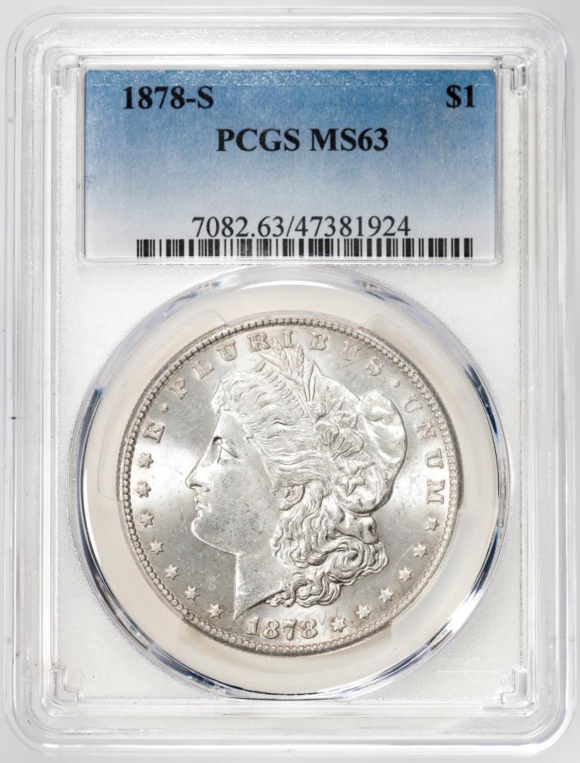 One 1878-S $1 Morgan Silver Dollar Coin PCGS MS63. PCGS Graded.