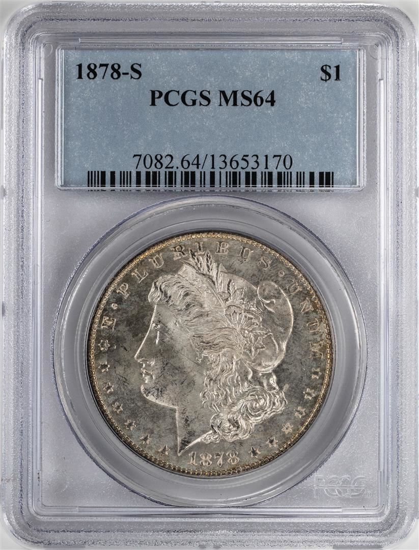 One 1878-S $1 Morgan Silver Dollar Coin PCGS MS64. PCGS Graded.