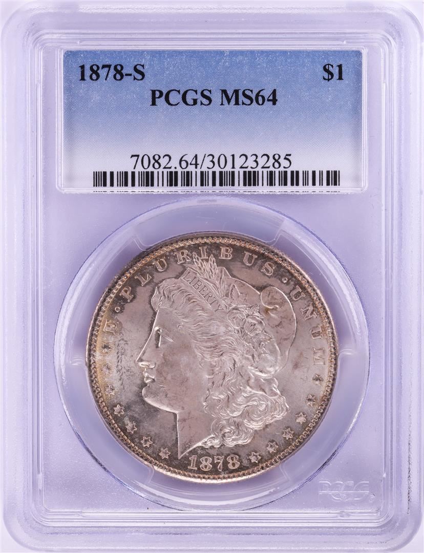 One 1878-S $1 Morgan Silver Dollar Coin PCGS MS64. PCGS Graded.