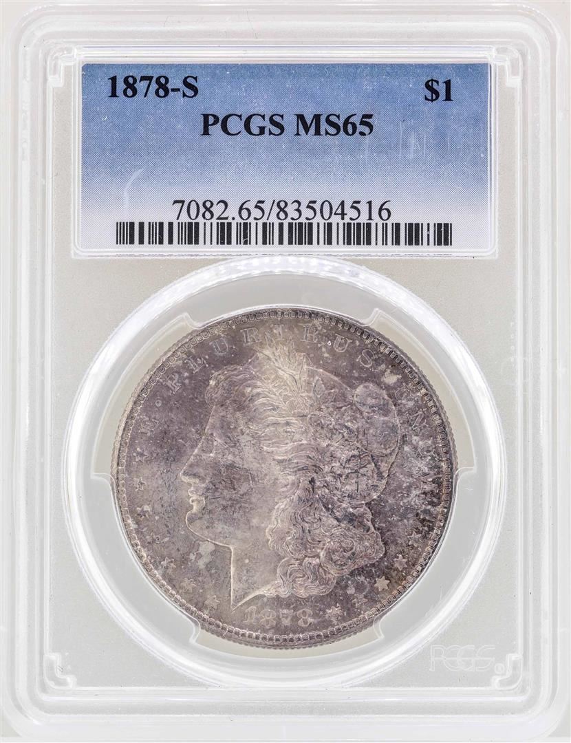 One 1878-S $1 Morgan Silver Dollar Coin PCGS MS65. PCGS Graded.