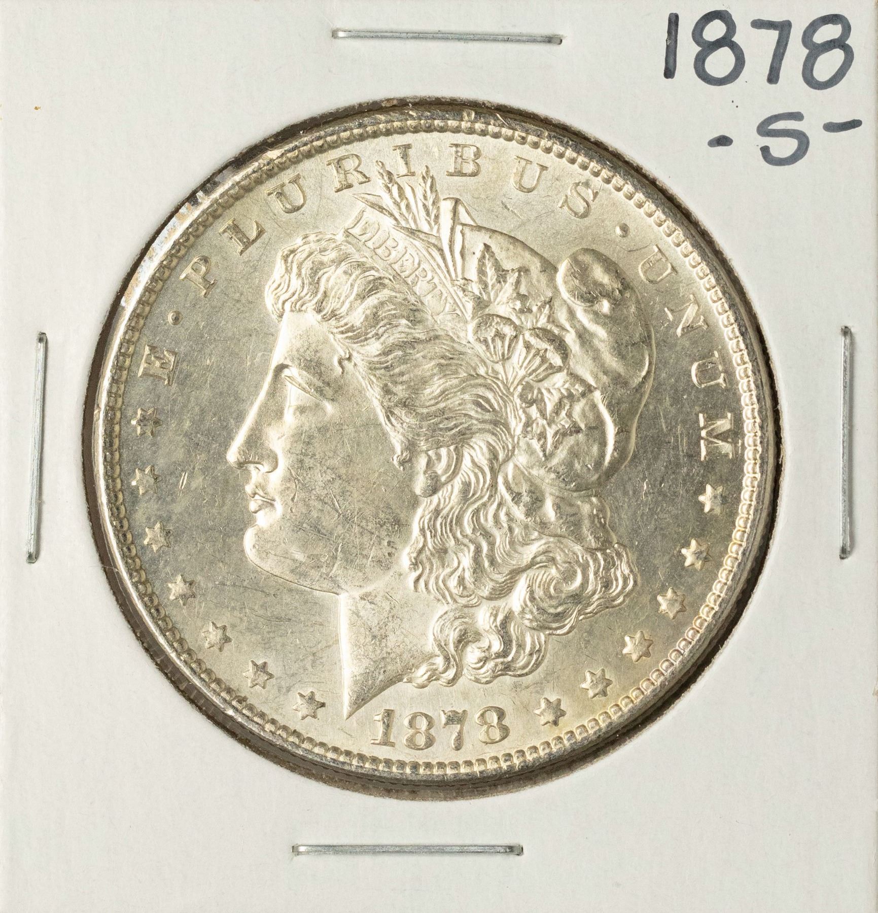 One 1878-S $1 Morgan Silver Dollar Coin.