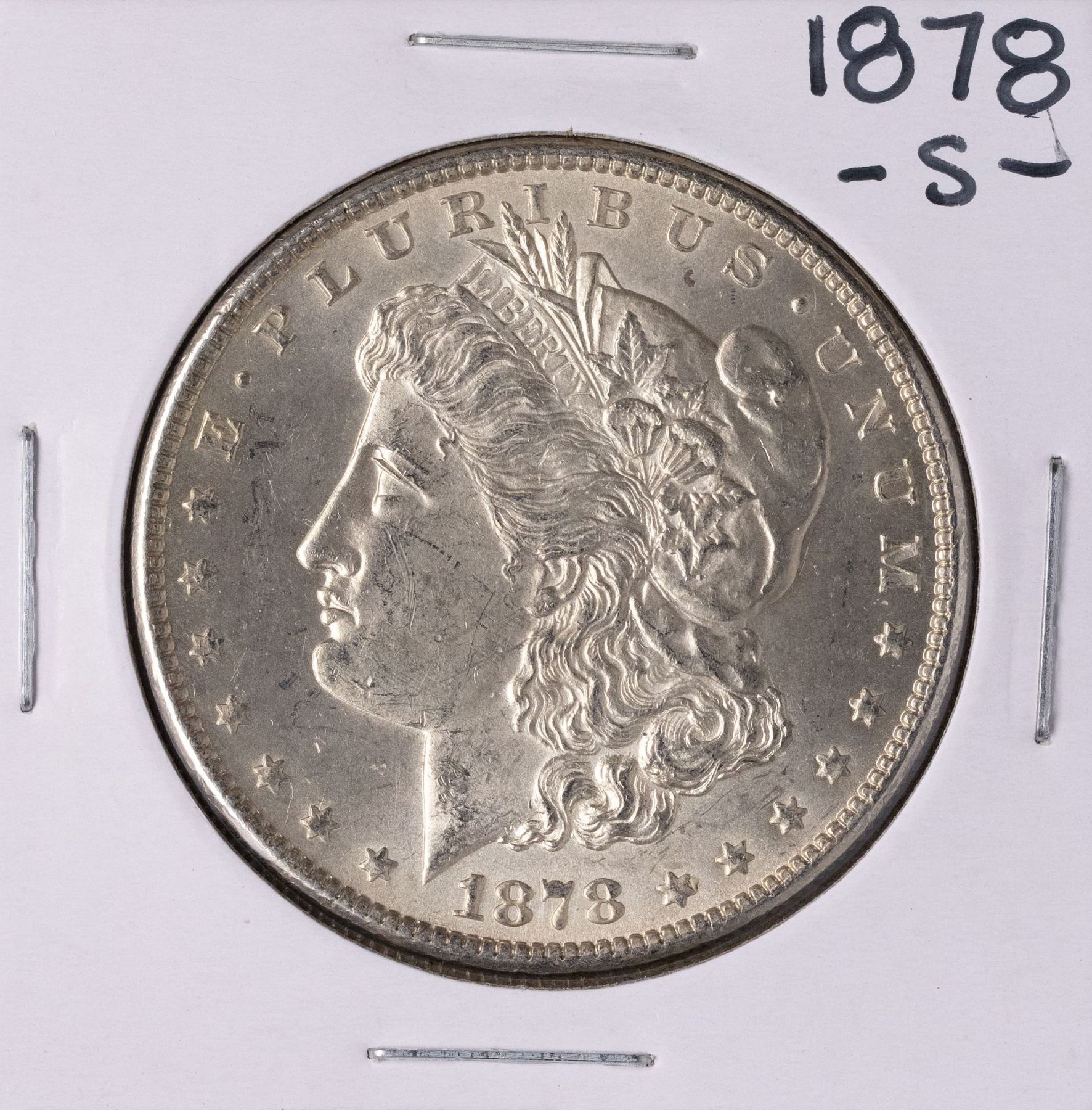 One 1878-S $1 Morgan Silver Dollar Coin.