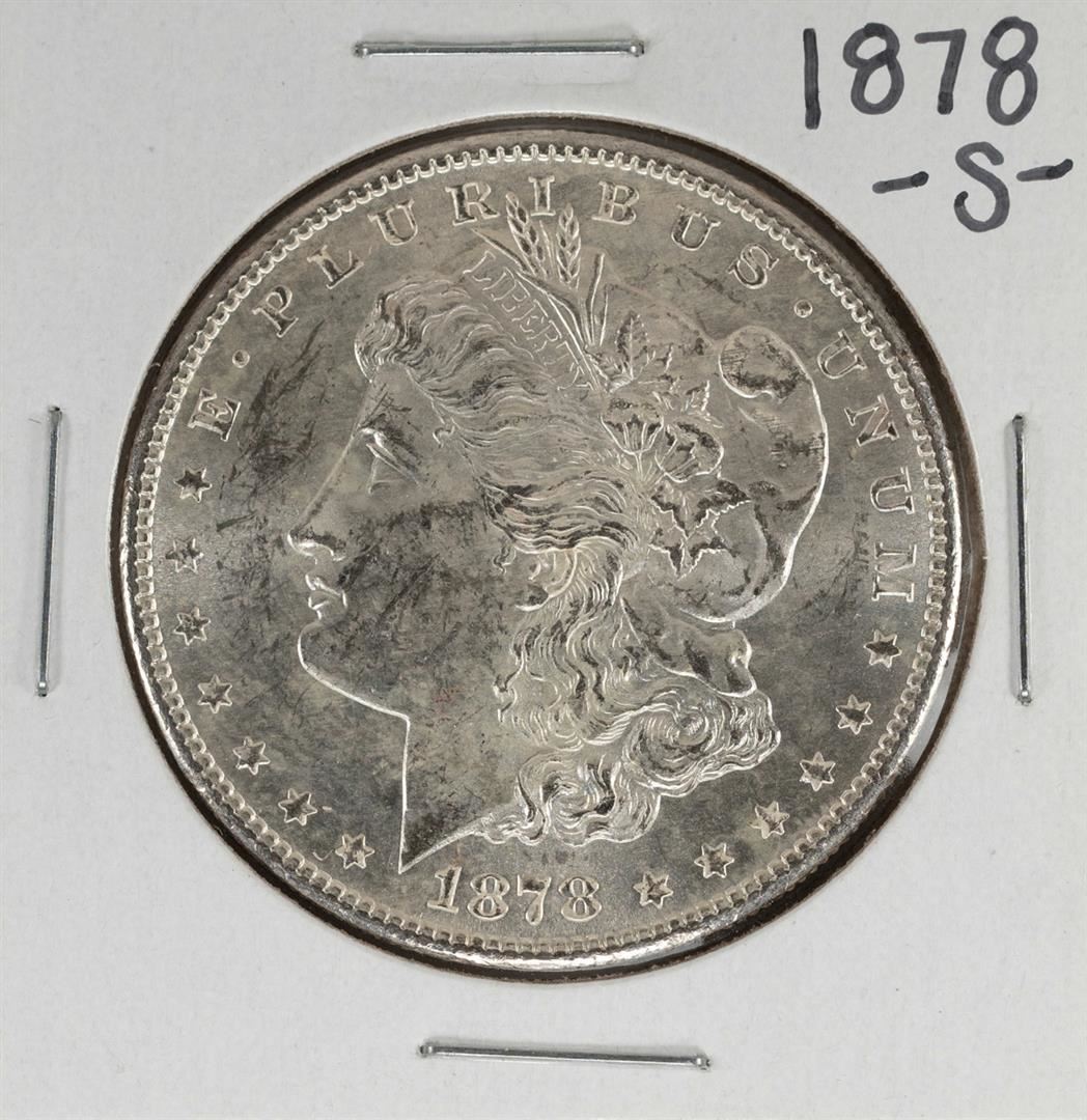 One 1878-S $1 Morgan Silver Dollar Coin.