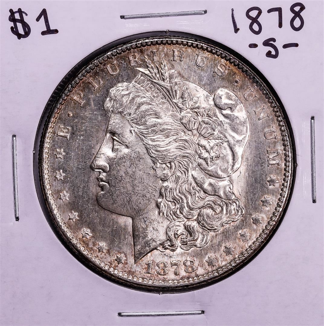 One 1878-S $1 Morgan Silver Dollar Coin.