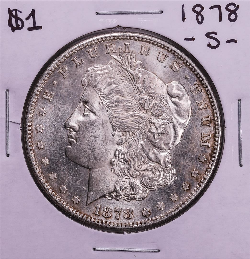 One 1878-S $1 Morgan Silver Dollar Coin.