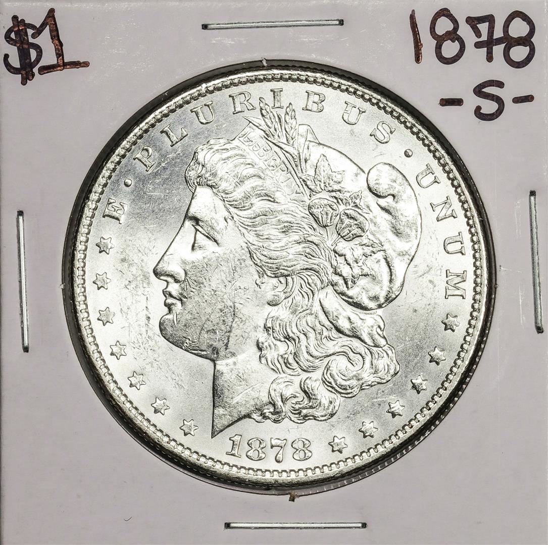 One 1878-S $1 Morgan Silver Dollar Coin.