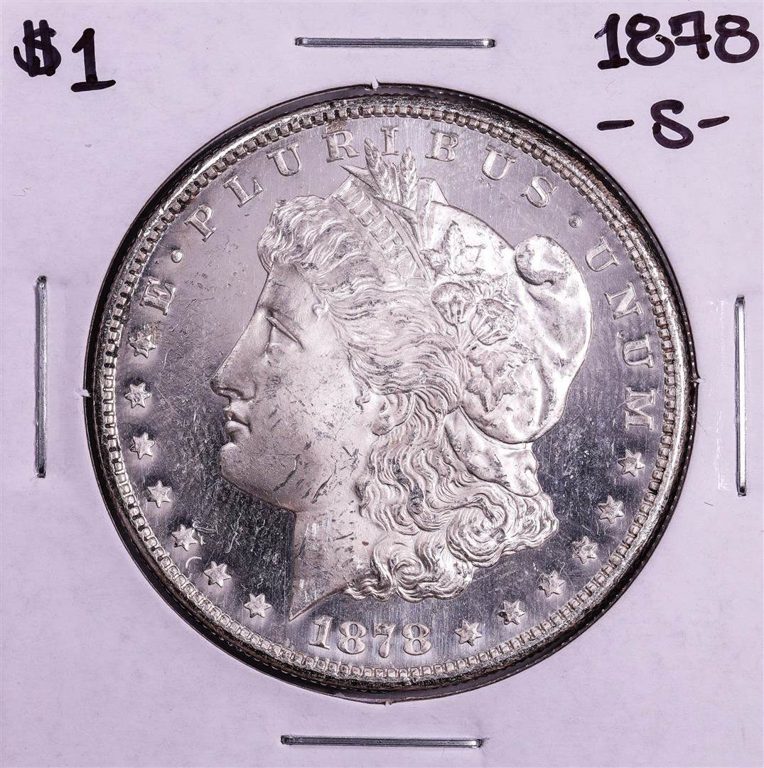 One 1878-S $1 Morgan Silver Dollar Coin.