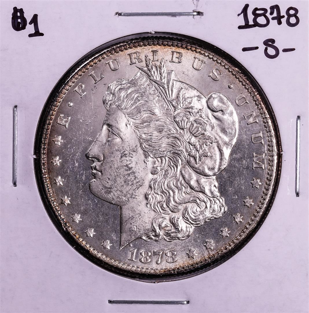 One 1878-S $1 Morgan Silver Dollar Coin.
