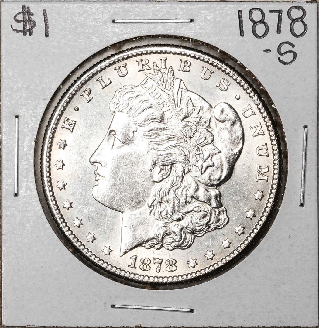One 1878-S $1 Morgan Silver Dollar Coin.