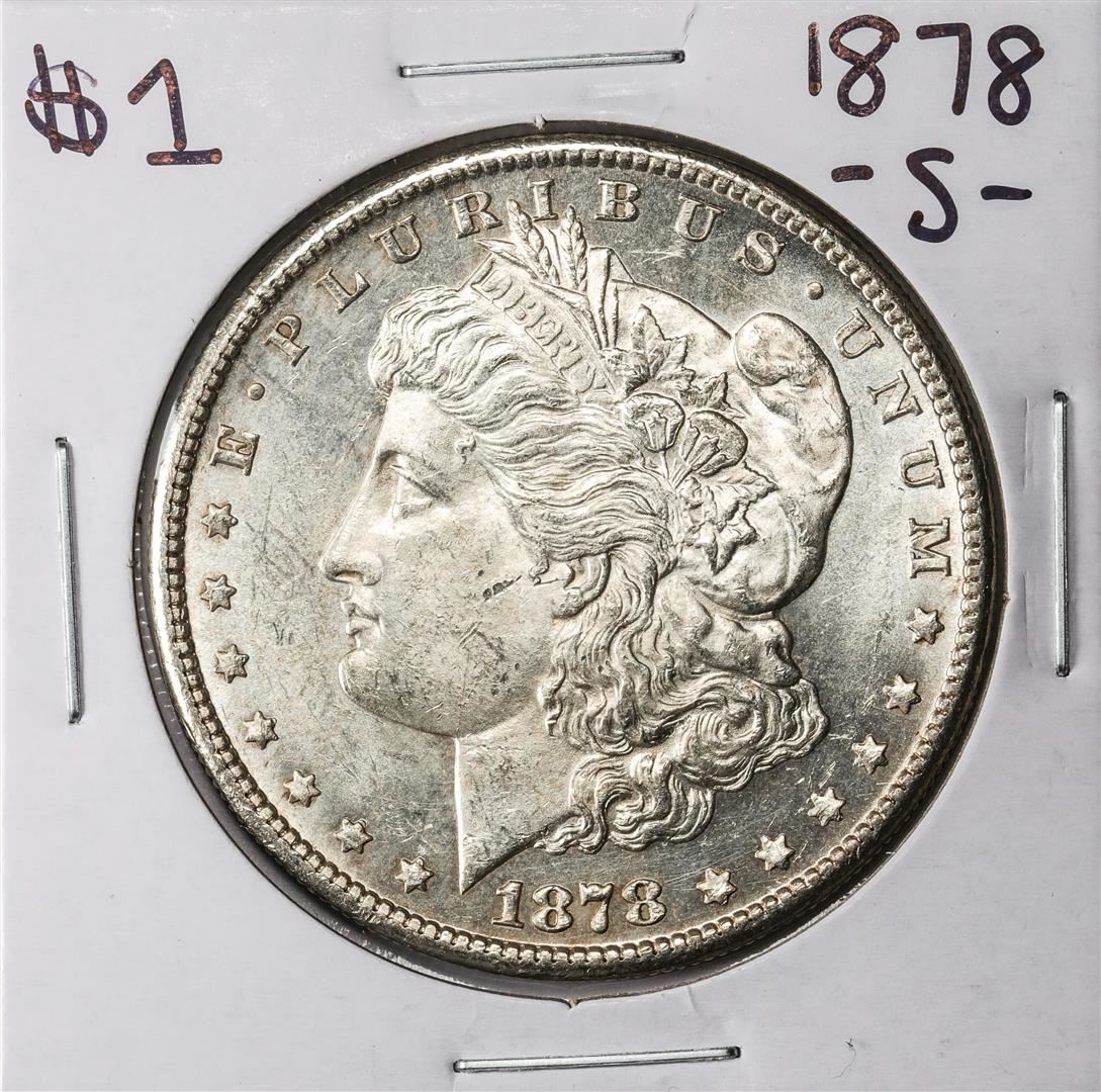 One 1878-S $1 Morgan Silver Dollar Coin.