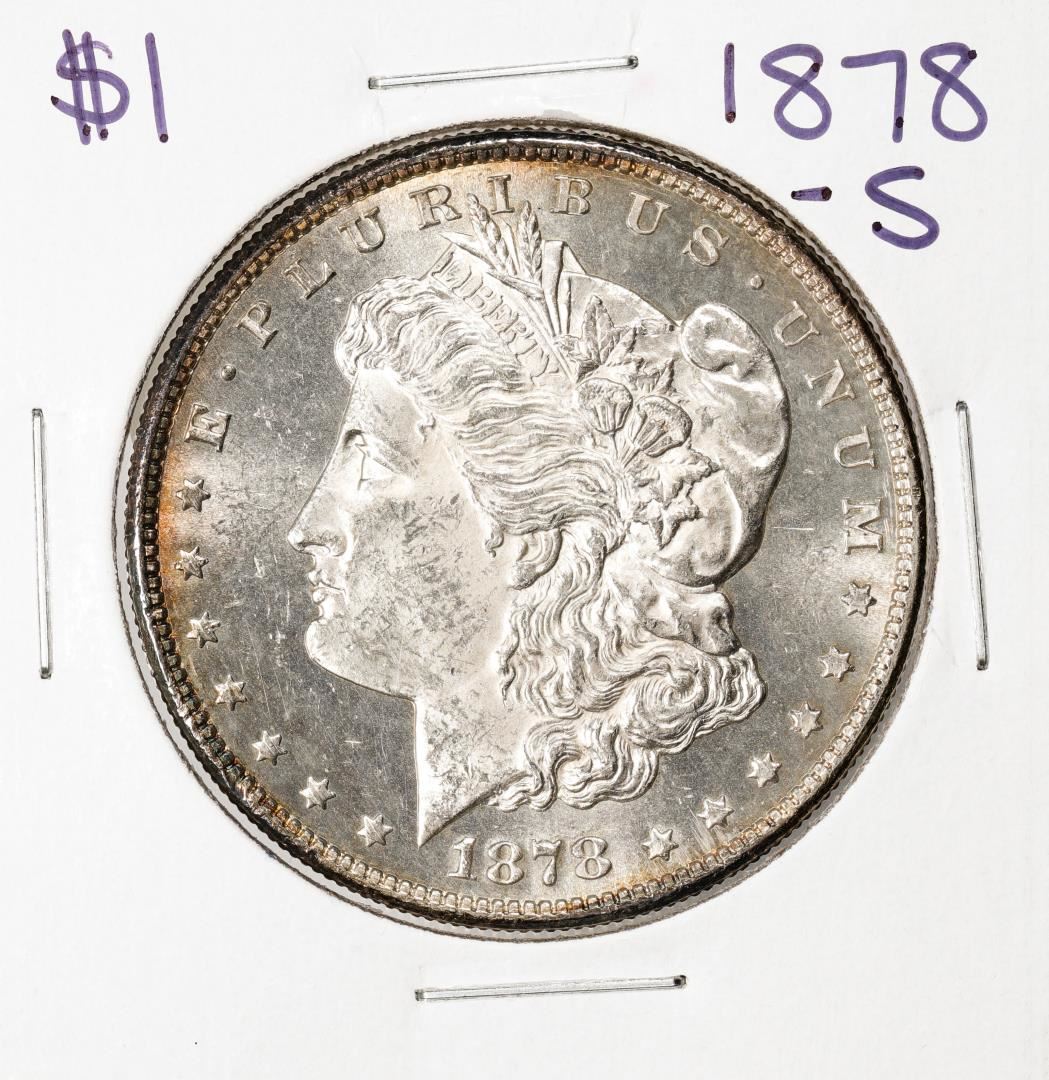One 1878-S $1 Morgan Silver Dollar Coin.