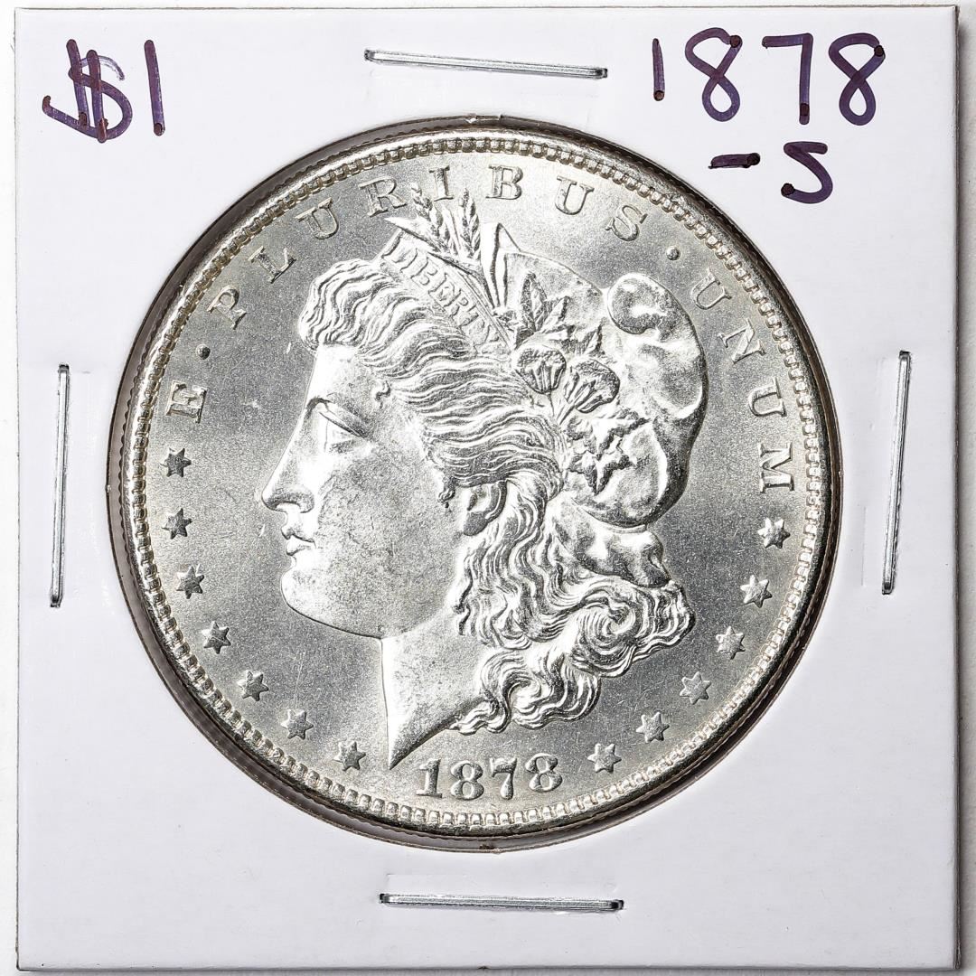 One 1878-S $1 Morgan Silver Dollar Coin.