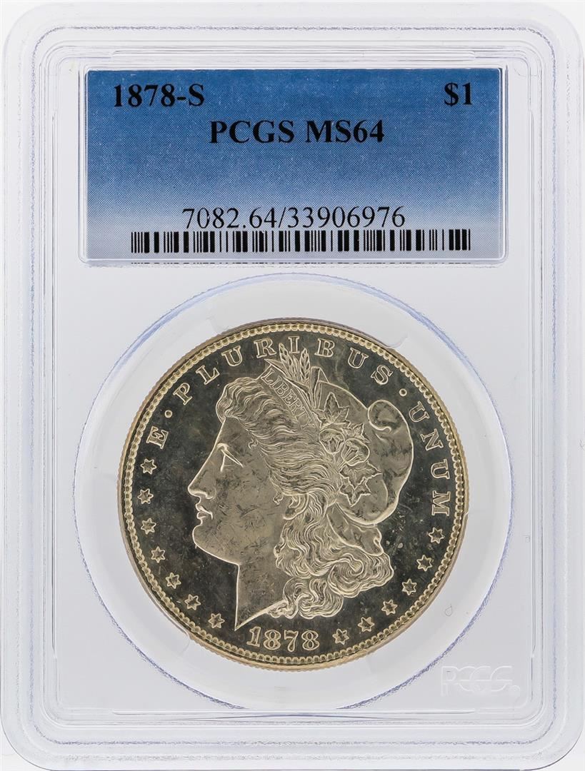 One 1878-S $1 Morgan Silver Dollar PCGS Graded MS64. PCGS Graded.
