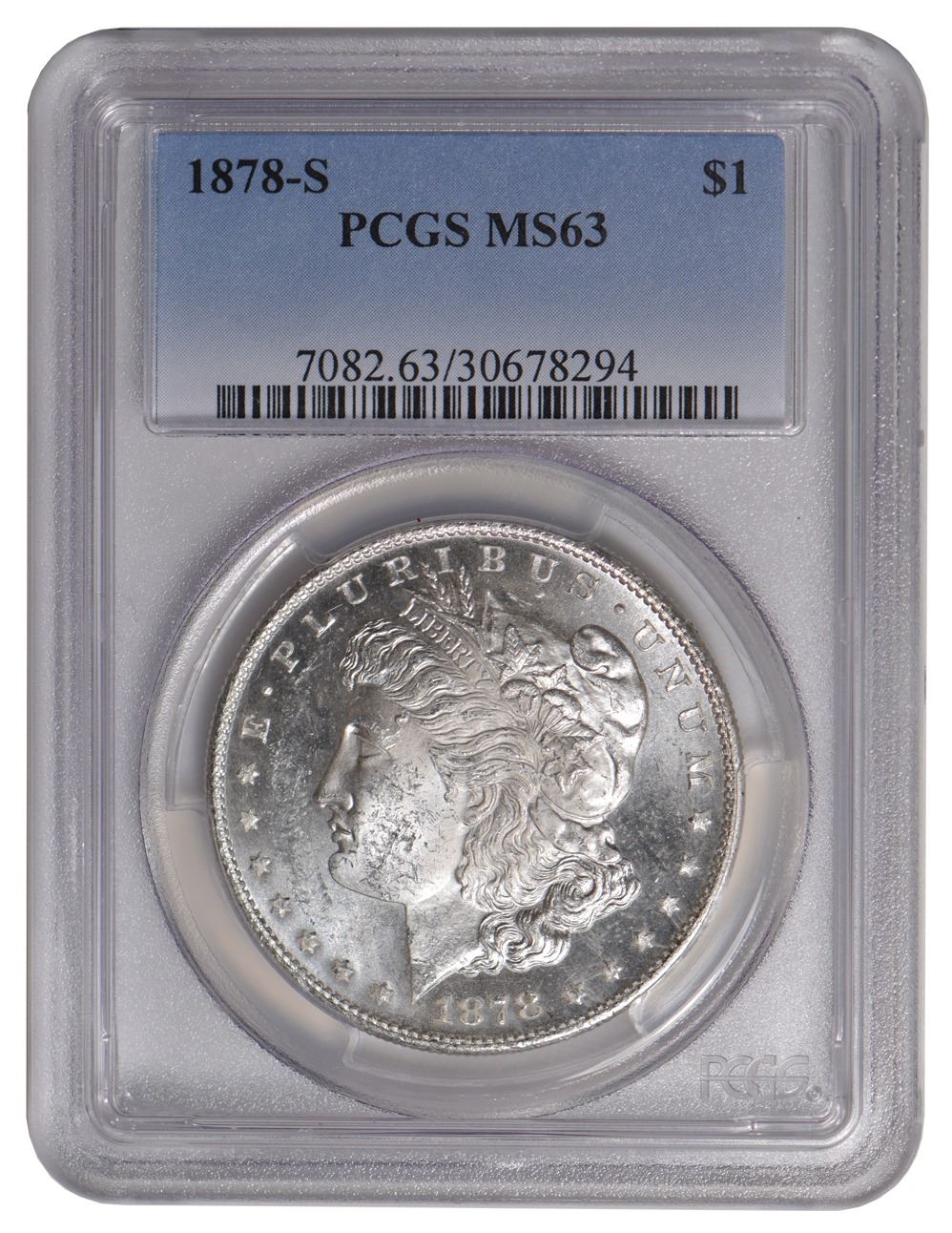 One 1878-S $1 Morgan Silver Dollar PCGS MS63.