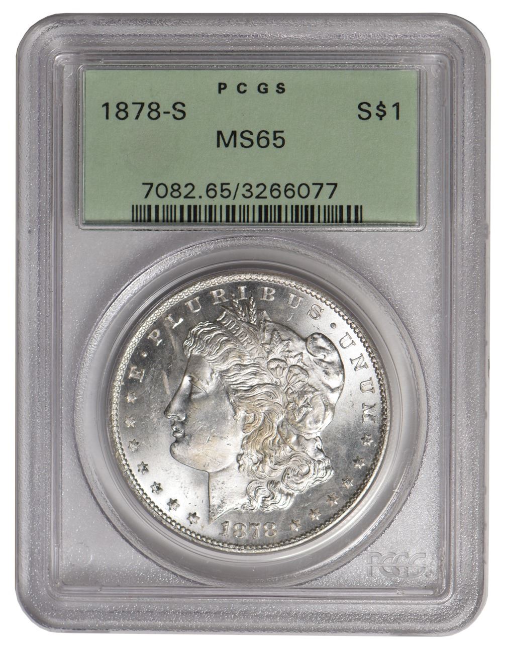 One 1878-S $1 Morgan Silver Dollar PCGS MS65.