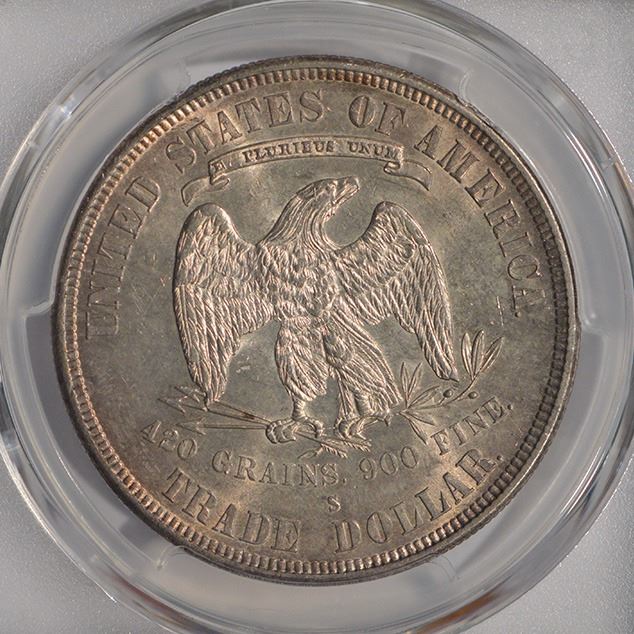 One 1878-S $1 Trade Dollar Coin PCGS AU58.